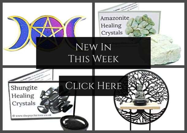 A whole host of newness to bring you this week, with lots more individual crystal packs with guides, which tell you all about the properties of your favourite crystals. And new incense holders, New Selenite pieces and some Shungite animal carvings! |